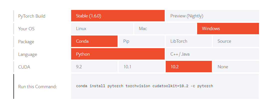 1 | conda install pytorch torchvision cudatoolkit=10.1 -c pytorch |