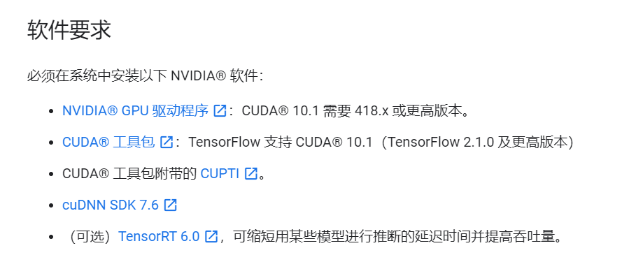 首先请到tensorflow官方网站查看需要使用的依赖版本