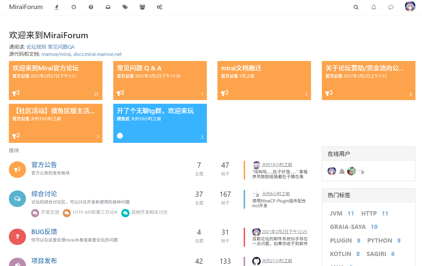 最上面的欢迎来到MiraiForum是通过自定义页面小部件实现的,在里面输入markdown即可实现