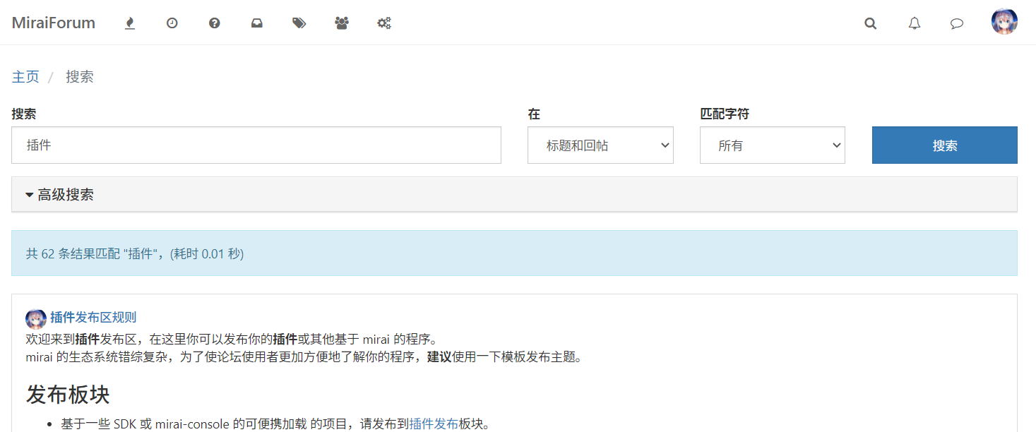 论坛支持搜索,关于搜索的配置我在网上找了很长时间,大部分教程都是使用第三方搜索系统完成。在我的网站没有多少帖子之前我觉得使用内置搜索更快一些。但是内置搜索并不支持中文,我使用了一个内置搜索的魔改版,叫做nodebb-plugin-dbsearch-jieba