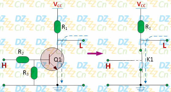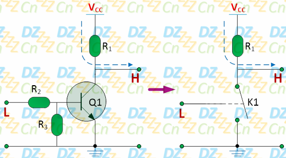 当基级为高电平时,集电极和发射极导通,输出低电平
