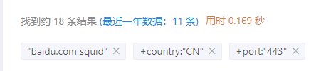 只有五个服务器吗?换一个搜索引擎试试看,使用zoomeye进行搜索,关键词为"baidu.com squid" +country:"CN" +port:"443"
